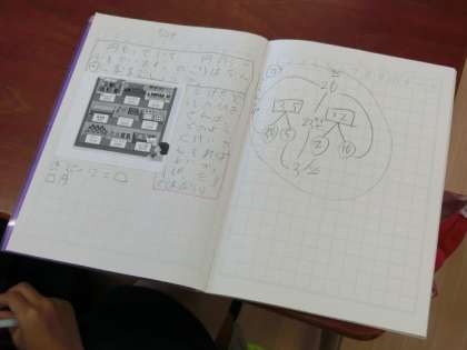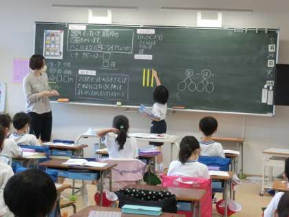 ブロックを書いて考えている子、さくらんぼの式にして考えている子など、様々な方法で考えをもつことができました。