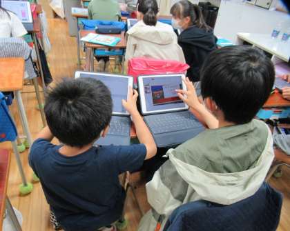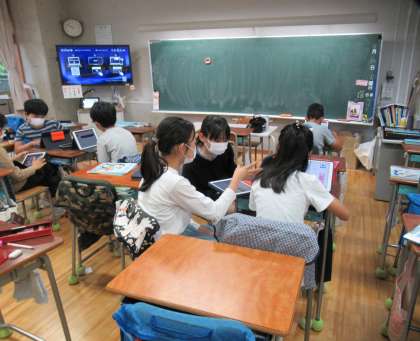 6年生は今、日本の文化を他国の人に紹介することを想定してプレゼンテーションを考えています。自分が自信をもって発表できるよう、学習した内容を使って、簡単な英語で作ることをポイントにしています。人前で英語を発表し、それが伝わるという経験を通して、英語を好きになったり、もっとたくさん話せるようになりたいという学習に対する意欲に繋がったりするとよいと思います。