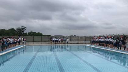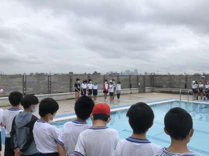 屋上のプールまで行き,仲良く安全に学習を行うことを宣誓しました。