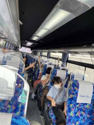 バスの中の様子です。落ち着いてバスガイドさんのはなしを聞くことができています。みんな元気に過ごしています。