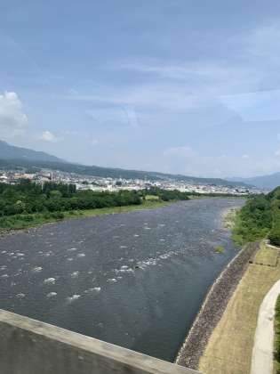 利根川をすぎました。子どもたちもバスの中から川を見て綺麗だと大喜びしています。ガイドさんのお話に耳を傾けながら楽しく移動できています。