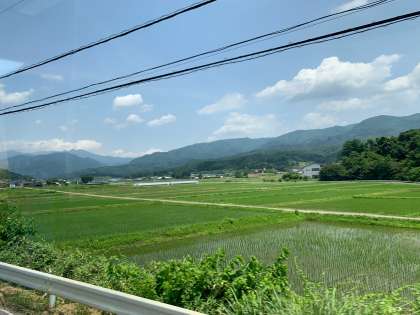 バスから見た田んぼです。田んぼの広さに驚いています!