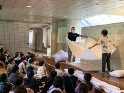 自分の布団は、自分で準備します。上手にシーツを付けられるでしょうか。