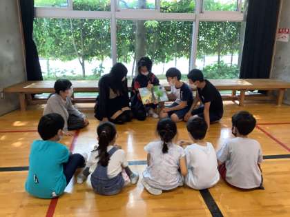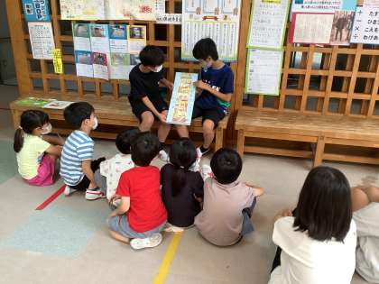 朝学習の時間に、6年生による読み聞かせが行われました。花の子班の6年生が、教室、集まれ広場、体育館に分かれて本を読んでくれました。楽しい本を読んでもらい、「紹介してもらった本を、今度図書の時間に読んでみたい。」「大好きなお兄さんとお姉さんに読んでもらって嬉しかった。」と、感想を伝えることができました。