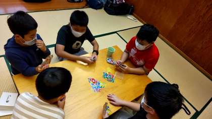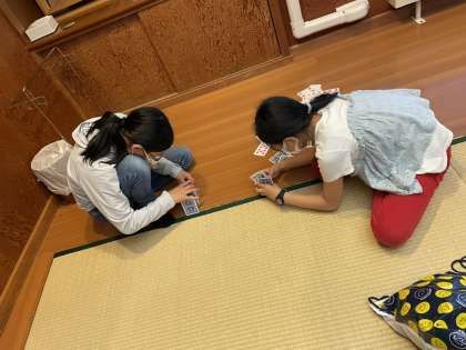 グループの友達としおりを書いたり、トランプやウノをしたりして楽しく過ごしています。