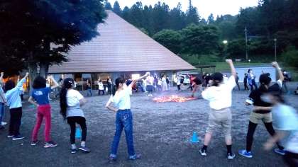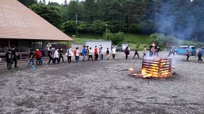 大きな火を囲んで