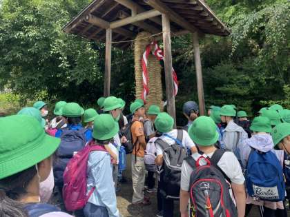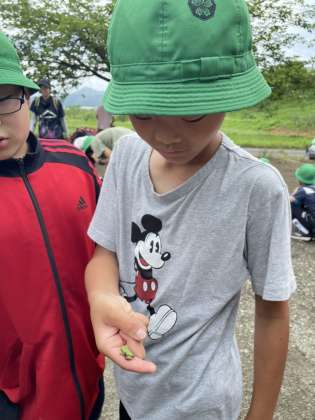 村巡りでは、カエルや大きなわらじを見ておどろいていました。