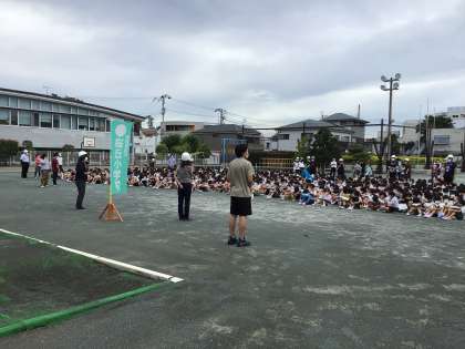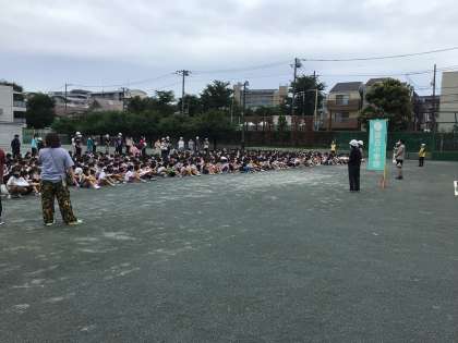 放送が入ると、「おさない、かけない、しゃべらない、もどらない」の「お・か・し・も」の約束を守り、静かに防災頭巾を被り、すばやく行動することや全校の安全が確認できるまで静かに待ち、校長先生の話を聞くことができました。