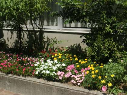 本日は、学校支援コーディネーターの方が、職員室前の花壇の整備に来てくださいました。花の周りの草取りや水やりなど暑い中、本当にありがとうございました。