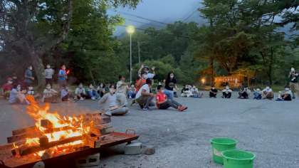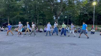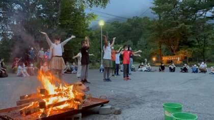 今度は、運動会の応援団が作った赤組と白組の踊りを踊って大盛り上がりです。