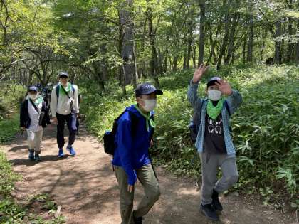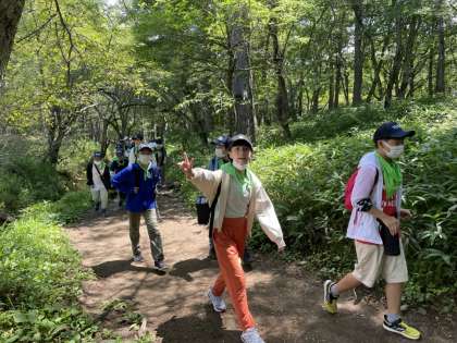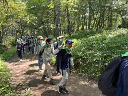 自然の中にいる鳥や生き物を見つけて喜んでいます。