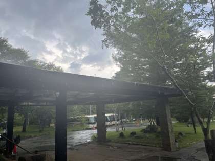 本日屋外での活動が全て終わったところで、突然雨が降ってきました。