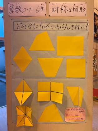 6年生の算数コーナーでは、「対称な図形」について取り扱いました。