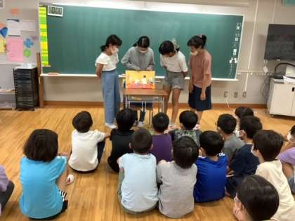 9月13日に図書委員会の児童による読み聞かせを行いました。今回は1・2・3年の半分ずつのクラスを対象に行いました。聞く側の児童は、お兄さん、お姉さんたちが本を読んでくれることにとても嬉しそうにしていました。図書委員会の児童は、初めての読み聞かせに緊張していましたが、真剣なまなざしで見てくれることが嬉しかったようで、楽しそうに読み聞かせをすることができました。