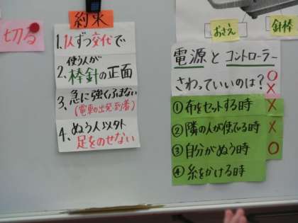 はずみ車をまわすと、どこの場所が動くかという問題に子どもたちは、よく観察し