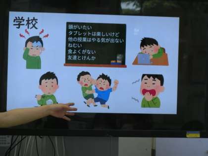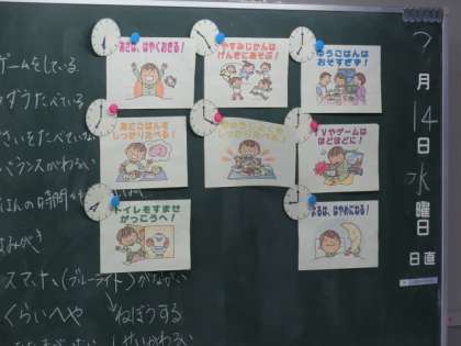 「朝ごはんを食べていない」「ゲームの時間が長い」などたくさん発見して発表し合いました。