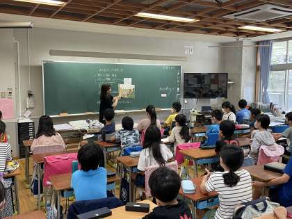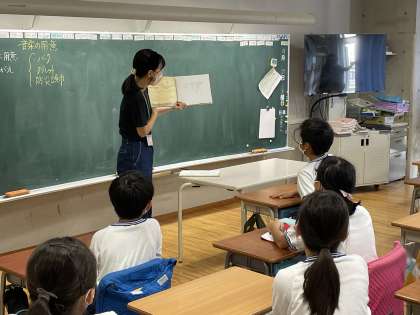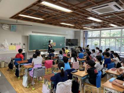 4年1組と4年2組で朝の時間に絵本の会による読み聞かせがありました。