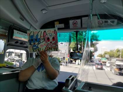 バスの中では、バスガイドさんのお話を聞くことも勉強です。