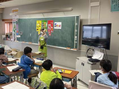 3年生は現在、社会科で「はたらく人とわたしたちのくらし」の学習を行っています。本日はライフコーポレーションの方を講師にお招きして、スーパーマーケットで働いていて「大変なこと」や「やりがい」について質問したり、食品ロスのことを教えていただいたりしました。食品ロスを減らすために、手前どりをすることや食べ物を大事にすることについてもご指導いただきました。教えていただいたことを、今後の生活に結び付けられるよう継続的に指導をしていきます。