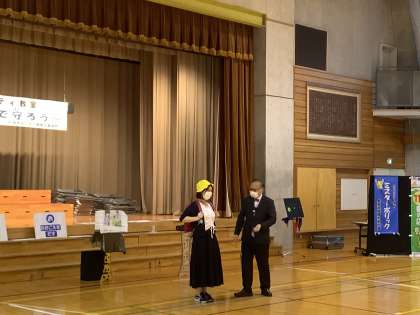 講話後には、「しの知らせるって、おうちの人に知らせるだけではなくて、警察の人にも知らせないといけないんだってわかったよ。」と感想をもちました。