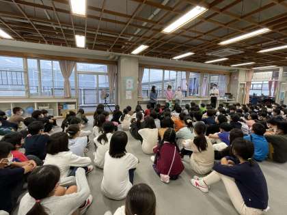 まず、学年朝会担当児童が、生活目標のめあてを発表しました。普段の生活を振り返り、忘れ物をしないように気を付けようというめあてを伝えてくれました。