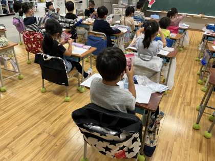 振り返りでは、「大切に育てたあさがおで、こんなきれいな作品ができて、うれしかった」