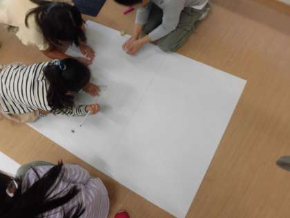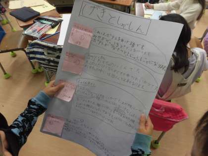 2年生は、花の子学習発表会で、地域の方からインタビューしたことをまとめ、発表します。各グループが、仕事に対する自分の発見を伝えるため、ポスターや新聞、紙芝居、劇などを準備しております。「発表が終わっても、掲示できるようにポスターにしました。」「劇で表現すれば、働いている様子が分かりやすいのでは。」などを考え、工夫しています。伝えたい内容や伝えたい相手に合わせて、表現方法を選んでいます。どんな発表になるか楽しみにしていてください。