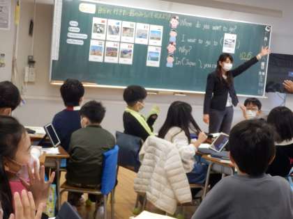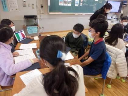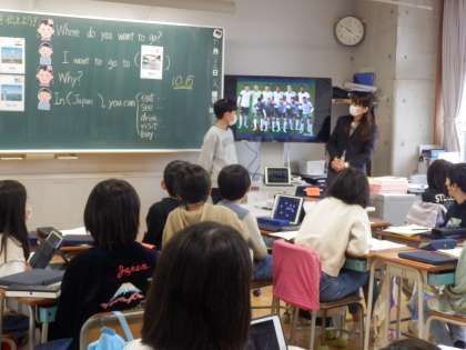 学習した会話文を堂々と英語で友達に伝えることができていて感心しました。