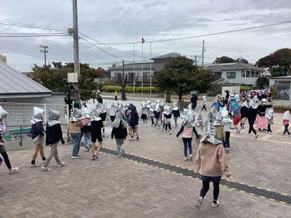 授業中に地震が発生し、昇降口が使えない場合を想定した避難訓練を実施しました。いつもと違う避難経路を通ったり、日頃使わない非常階段を使用したりして、校庭に避難しました。移動の際、混み合う場面もありましたが、教職員の指示等を聞いて、素早く行動することができました。災害は、いつ、どこで発生するか分かりません。避難経路を確保し、把握する大切さを知り、災害にあった時の対処方法を意識することができました。