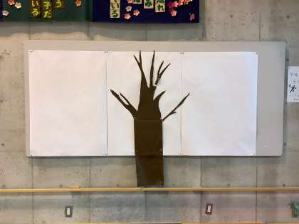 子どもたちが書いたエールの葉っぱカードを学年ごとの木に貼ることで、いろいろな思いの詰まった大きなエールの木になります。