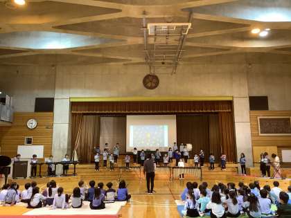 本日、花の子学習発表会に向けて、体育館で練習を行いました。各クラスが呼びかけ、合唱、合奏を通しで行いました。本番さながら、緊張感をもって行うことができました。どの学級も体育館に響くぐらいの大きな声、演奏をしていました。明日から学年リハーサル、リハーサルと本番向けて、児童の気持ちを高めていきたいと思います。