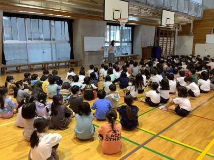 本日、体育館にて、学年朝会を行いました。2学期の目標である「表現する」の振り返りをしました。花の子学習発表会では、練習の成果を本番で表することができたことを子ども達と確認しました。また、子ども達は、「授業で自分の意見を発表したり、友達に自分の思いを伝えたりできるようになった」等の質問に挙手をして振り返りをしました。二学期も、残り1ヶ月となり学期末となりました。引き続き、子ども達が成長を実感できるように指導に励んでまいります。