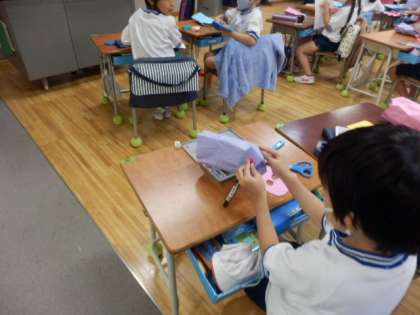 1年生が図工で「あそぼうよ パクパクさん」作りをしていました。
