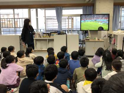 また、今朝のサッカーW杯の日本代表選手が活躍する映像を学年全体で見ました。これまでの努力あっての勝利。点を獲得した時にチーム全員が走って集まる姿に、子どもたちも感動していました。先週の花の子学習発表会でも、本番までにたくさん練習してきたから、達成感ある発表になったことを全体で共有しました。