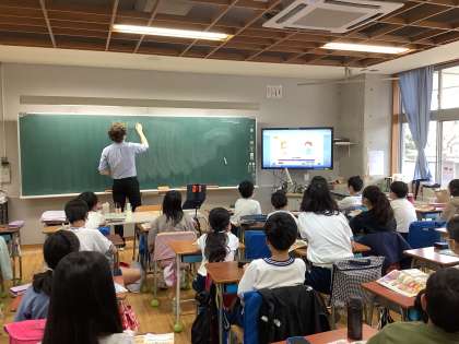 今回は1回目なので、英単語の復習をしました。写真を見て発音と単数、複数の言い方の違いをALTと一緒に行いました。