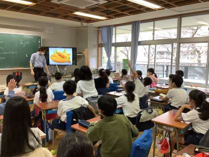 4年生は12月から新しいUnitに入りました。このUnitでは、果物や野菜の表現を復習しながら、欲しいものやその数を伝える練習をします。