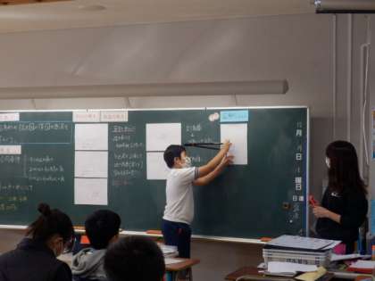 子どもたちは、基となる点をどこにするか、2辺の2倍までは分かるけど、その後の編はどうすればよいか考えながら一人一人自分の考えをもつことができました。