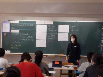 これまで学習した三角形の拡大図のかき方を活用して本授業は、四角形の拡大図を考えました。