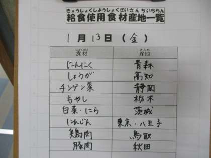 1月13日(金)の給食