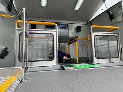 起震車訓練では、起震車に乗り震度7の体験をしました。子どもたちは、揺れを体験する中で、怖さだけでなく大きな地震が起きた際にすばやく避難行動を行うことの大切さを感じとることができました。