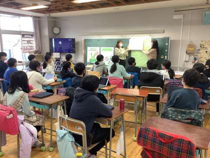 6年生の家庭科「桜丘循環プログラム」の授業を行いました。卒業を前に自分たちが住み、育った桜丘の町について考えるプログラムです。