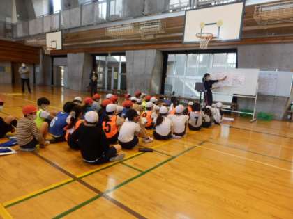 そして、本授業のめあてを、「ボールを持たないときの動きを考えよう」。子どもたちは、3対3のチーム練習をするときから、どこの場所に動けばよいのか考えていました。