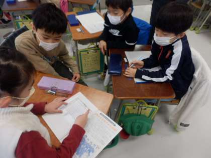 こうかんの術や段と段を合わせる術などを使い、自分の考えを発表し合い解決することができました。