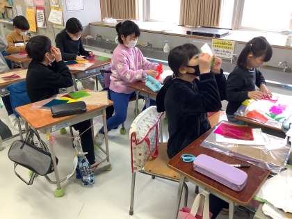 また、透明なセロファンを重ねて色作りを楽しんで学びました。