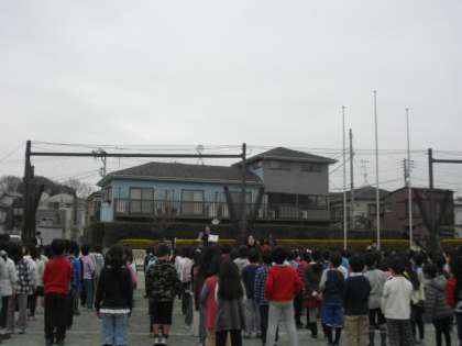 2月6日の朝、校庭で全校朝会がありました。校長先生からは、児童の表彰がありました。校長先生からは「自由研究で海の生物について難しい言葉までよく調べてありました。」とお話がありました。