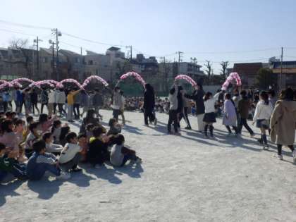 5時間目に校庭で全校児童が集合し、6年生を送る会を行いました。