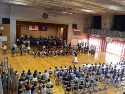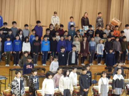 先日行われた「6年生を送る会」のお礼として、本日6年生が、合奏を聴かせてくれました。曲は「栄光の架橋」です。全員の気持ちと音が合った素晴らしい演奏となりました。聴いていた他の学年の児童や、来てくださった保護者の方から大きな拍手がわきました。