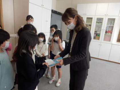 校長先生に渡すときに、ちょっとドキドキしながら嬉しそうにしていました。