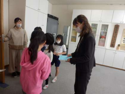昼休みの時間に、1・2・3年生の代表の子が校長室に来室しました。