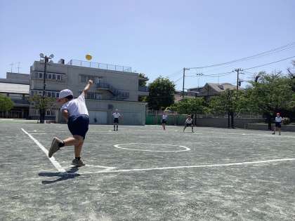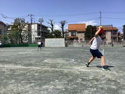3年生の体育で、ジャイアンツのコーチによる出前授業が行われました。